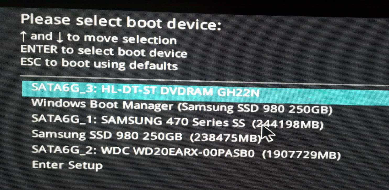 Enter boot menü (kép1) "windows boot manager" indítja a win10-et, ha csak a "samsung ssd980"-ra bökök akkor újra indul az egész gép. Win 10-ben nem jelenik meg a win7 (kép2) Win10 után újraindítva a gépet alapból a sata6g_1 indul (win7), de ekkor váni kell 4-6 percet mire beindul. Közben szép színes csíkok-pöttyök látszanak a monitor tetején (kép3), miközben folyamatosan *tekeri* a SSD 470-et. Ha ezen túl van akkor már akárhányszor kapcsolom be a gépet, rendben/gyorsan bejön a win7 egész addig amig nem akarok win10-et betölteni, mert akkor kezdődik minden elölről. Az UEFI/Legacy dolgokat ellenőriztem a BIOS-ban, rendben van. Most letörlöm a win10-et és megpróbálom win7 alatt installálni.