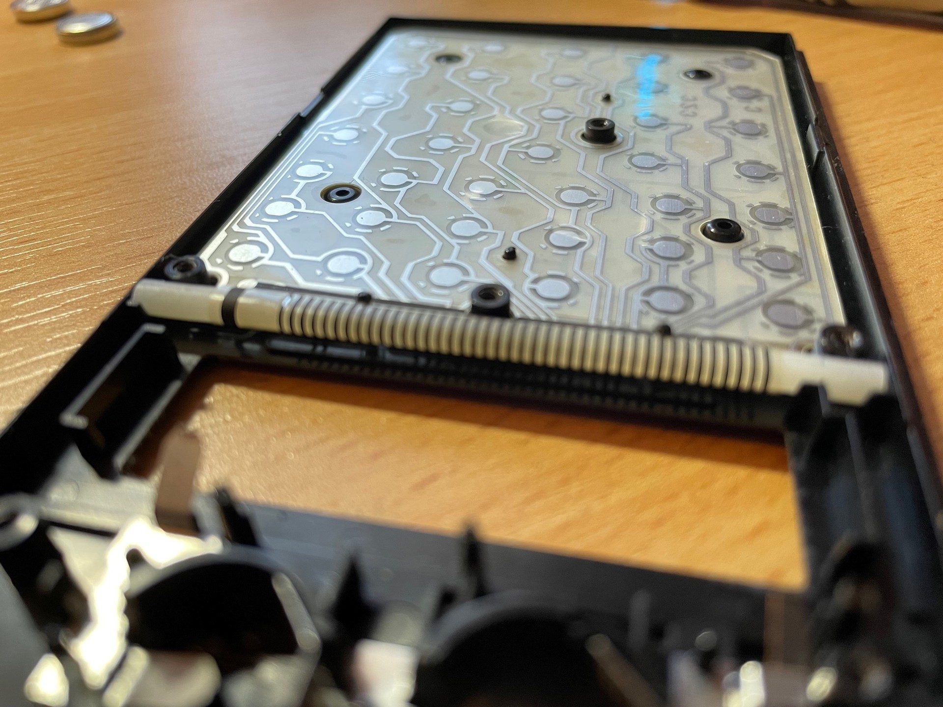 Ez még a régi megoldás. Valami vezető anyag van felgőzölve egy fóliára. Ez nyomódik neki a kijelző csíkjainak, és az ic lábainak. Ha ezt elkezded dörzsölni, vagy alkohollal mosni, lejön róla a bevonat, és befejezi pályafutását. Óvatosan leemelhető az IC a tüskékről, utána a fólia felső fele felnyílik, a gumi henger kivehető, utána a fólia teljesen kivehető. Így már látható, ha véletlen közé került valami kosz. ( őszintén ebben nem hiszek) Szerintem az IC lábát picit takarítsd meg, a fóliát óvatosan töröld meg az IC lábainál mielőtt jobban szétszednéd.azután a lábak fölé valami puha vékony csík, hogy a hátlap jobban nyomja, aztán összerak. Ha bejött öröm, ha nem jöhet a jobban szétszedés, és a kijelzőnél is takarítás... Amúgy ha a fóliáról elkezd leválni a bevonat ( mint az IC utolsó láb) akkor befejezve a feladatát örökre. Esetlegesen valami vezető ragasztóval pótolható.