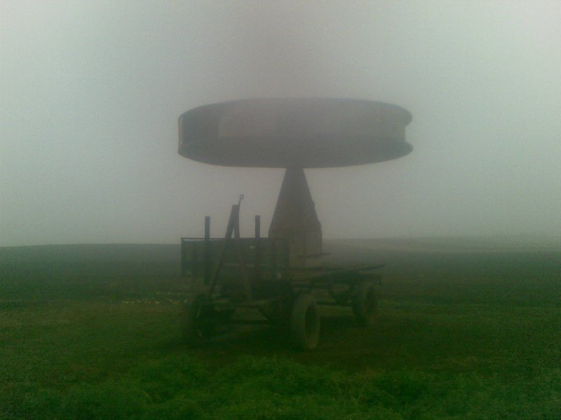 aszentségit mekkora miaz....méretes egy ufó! (Szerintem ennél már az autógenerátor is muzsikálna gyorsító áttétellel, az áttétel miatti veszteségek ellenére is....csak lehet hogy magasabbra kellene menni vele....fel kell dobni annak a kocsinak a platójára aztán irány az első domb....de ahogy elnézem a képet domb sehol...