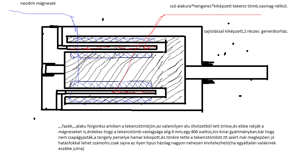 Teljesen egyetértünk. Ennek a válasznak ezért csak pici része szól Neked, inkább lobbi a vasmagos generátor mellett. Ezt már biztos írtam itt, de megismétlem. Erbével azon vitáztunk, villanymotor legyen átalakítva, vagy maradjon a tárcsa alak a vasmagos generátornál, és csak az elektromos szempontokat vettük figyelembe: