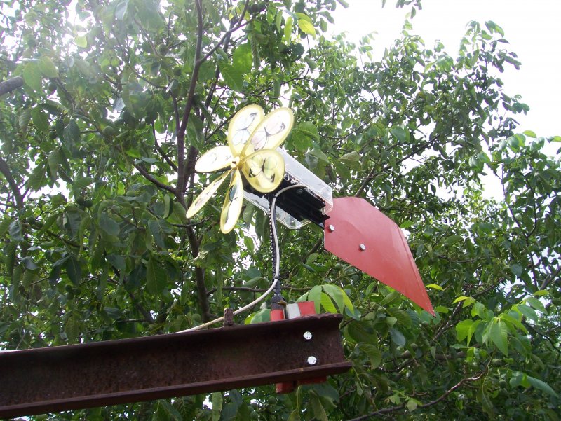 Csak volt időm és kedvem volt játszadozni. A motor egy régi rádióból szedtem és azt átételeztem, a hajtás sima beföttes gumival megy és ezt rákötöttem egy sima kertilámpás elektronikára, szóval napelem helyett a szél termeli az áramot, ezzel csak az volt a probléma hogy a LED akkor világít ha nem forog a lapát vagyis ha egy adott feszültség alatt termel , és efelett kikapcsolt. Gondoltam egyet és most csak simán rátettem az elemekre egy egyenirányító dióda kíséretével és rámértem kb 5 órával késöbb és frankón töltött rá, és 2db 2600 mAh os elemet tölt, nem egy tipikusan kertilámpából vett 600mAh os elemet. Ezt már csak egy alkonyatkapcsolóval kell megspékelni és talán jó is lesz Ez persze csak gyerekes kísérlet dehát valahol el kell kezdeni meg nem akartam egyszerre nagyot alkotni. Egyenlőre csak okosodok a profiktól!!!