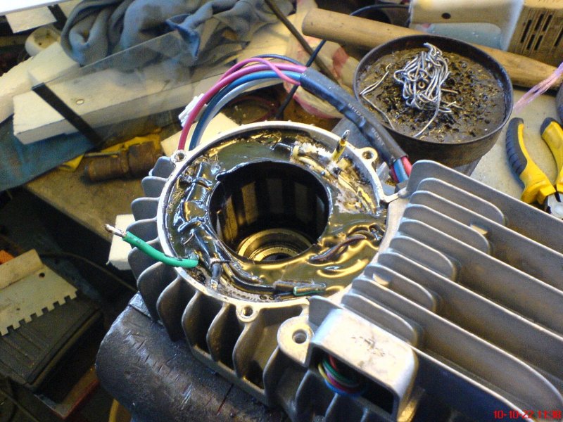 Most megmutatom a belsejét. Egyébként össze van építve a lágyindító elektronikával. Kevés voltot termel,mert nagy fordulatú.De amperben meg durva.Feszültség többszörözőt vinné rendesen. 300.as fordulaton 2 volt váltóáramot termel fázisonként.