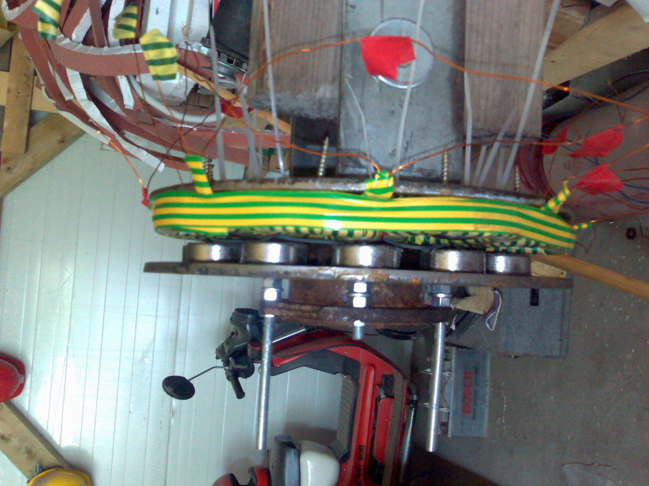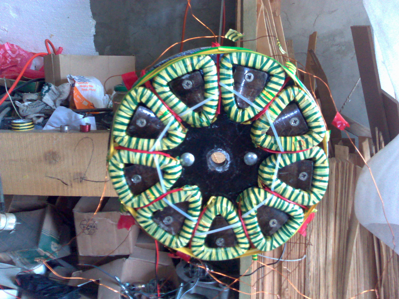 a tekercsek elkészítése kb 1 orát vesz igénybe,a gond az hogy megfelelő huzalbol pont akkora tekercseket csinálj hogy ha a 9db össze teszed elférjenek egymás mellett és a feszültséged is meglegyen,a többi már kissebb mutatvány,bár bevallo először én is kutakodtam miböl kezdjem el,de pl egy kissebb generátorhoz a gyámántvágó korong pont jó