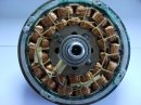 Végre találtam egy mennyezet ventilátort, ill. annak a motorját . Kísérletképpen készítenék belőle egy generátort. Ötleteket várnék arra, hogy ki hogyan rendezné el a mágneseket, az állórészen. A tekercstest 120mm átmérőjű, és a forgórészből (külső koszorú) esztergálnám ki, a mágnesek helyét.