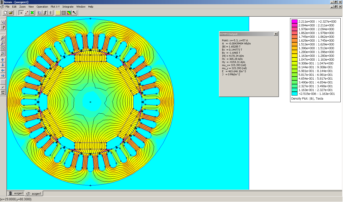 Megnéztem, 30mm széles mágnessel a horonyoszlop indukció 1,6T koszorú indukciója 1,3T, ezt már jónak mondanám. 3mm vastag mágnessel ugyanakkora az indukció mint 6mm vastaggal.