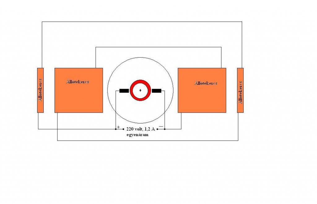 Több dolgot nem értek a hozzászólásoddal kapcsolatban. Van nekem az a 220 volt, 1,2 amper, 700 fordulatú egyenáramú generátor: Stabil Kabé . Félépítése a következő: forgórész, két szénkefe, két álló vasmag, amelyiken négy tekercs. Mindegyik vasmagon van egy kicsi és egy nagy menetszámú tekercs. Minden állótekercs sorba van kötve a másikkal. A legvégén maradt két drótvég az állótekercsek kimenete, amelyik a szénkefékre vezet. Ez a generátor két sarka. A dinamóra rákapcsolok egy 220 volt, 100 W-os égőt és utána megpörgetem 700 fordulat/ perc-el, az égő szépen világit. Ezt a kísérletet ha megismételem egy 12 V, 21 W-os izzóval, az izzó szála alig pirosodik be, tekerhetem akár milyen gyorsan. A dinamó 700 fordulatnál 1,2 amperre képes, az izzónak 1,75 A kell. A gerjesztés mindig akkora a dinamónak, mint a kimeneti feszültség, ha rákötök egy akkut, az leterheli a kimeneti feszültséget az akku szintjére, és a gerjesztés is csak annyi. Végeztem egy kísérlet. Rákapcsoltam az akkut és bekötöttem az ampermérőt. megpörgettem a dinamót olyan fordulatra, hogy már rég 220 voltot adott volna normális esetben, de csak 0,68 amperrel töltött. A halogén izzó, amit tanácsolsz, hány wattos? A te szélgenerátorod hány voltot ad, hogy emelőre van szükséged?