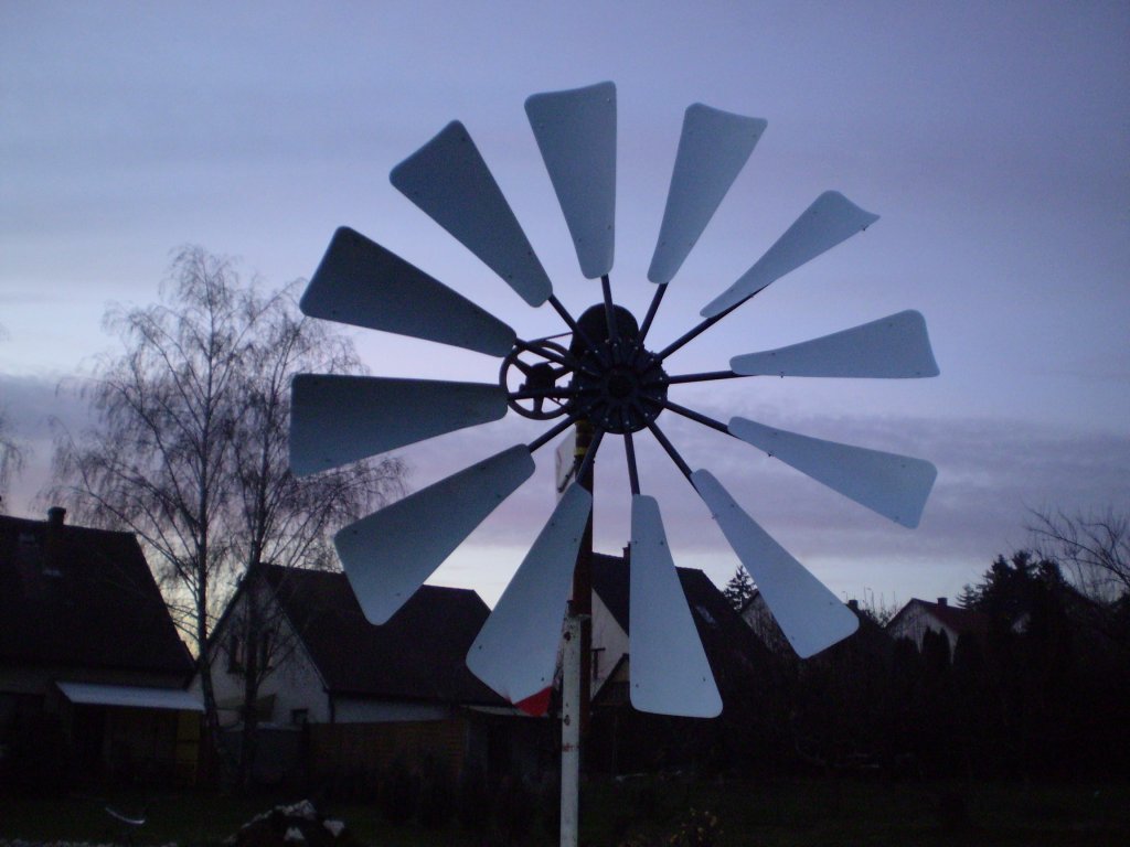 Az enyémben is van "lyuk". A lapátokat tudom forgatni, mivel csőből van a száruk. Tudom variálni három, hat vagy tizenkét lapátosra. Most a hatlapátos verzió van fent. Jelenleg 2,5-3 m/sec szél van, kb 90-et forog, ami kb. 25V és 25Watt a bojler betéten. Hát nem sok... A csatolt fotón a 12 lapátos verziót látjátok.