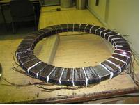 Két észrevételem lenne. 1. A 24 tekercshez a 2x18 mágnes sehogy sem passzol. 2x8 mágnes vagy ezek többszörösei kellenének. 2. A fotón látható módon a vasmagra feltekert tekercsekben mi módon fog feszültség indukálódni? Trnaszformátorként inkább működik majd mint generátorként.