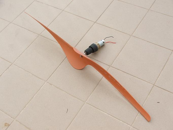 Mit lehet csinálni egy olyan fúrógéppel, aminek megnyekkent az akkuja? A tokmány mögötti hajtóműházban gyárilag benne van egy 1:9-es lassítóáttétel. (ebben az esetben persze gyorsítás a feladata) A motor 12V-os. A lapát nagyjából 80-100 ford/percénél leadja a kb. 10V, 0.5 A-t. Egy egyszerű DC-DC konverterrel (lásd Maxim IC-k) könnyedén lehet kisebb akksik töltésére használni. A lapát 1 méter húsz, és boldogabbik korában egy 150-es átmérőjű PVC cső volt. Képek mellékelve, üdv!