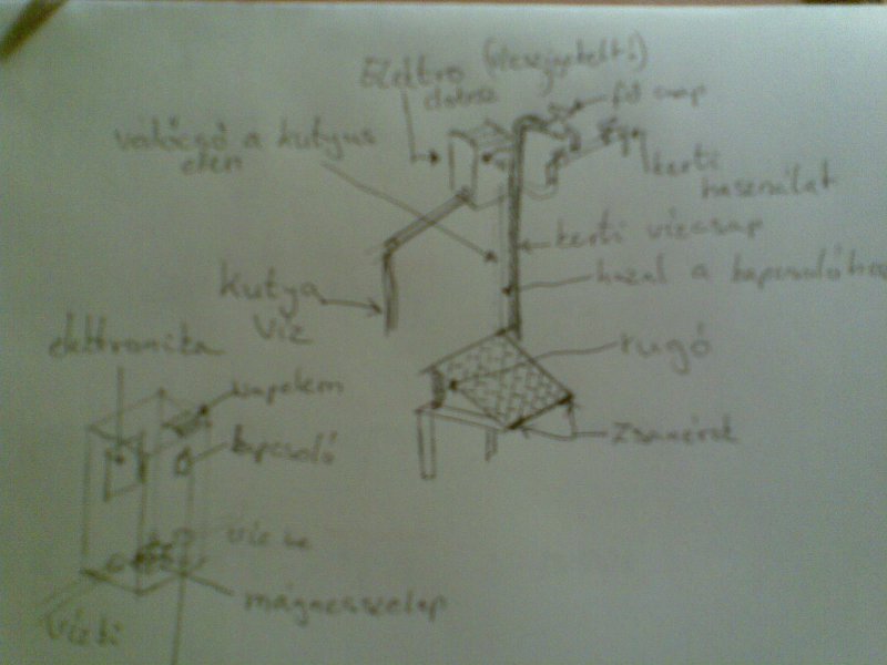 Hát akkor van egy másik dolog ami hez nem kell a csapot megváltoztatni.Érintés érzékelő.A kutya ahogy oda megy inni jön a víz .Vagyis ezis mágneses.A motor kihúzza a mágnest aztán ha a kutya már nincs ott akkor visszapattan.Lerajzoltam az áramkört és ahogy lenne rászerelve csapra.Én segíteni próbálok.Ha nem jó még gondolkozok.De azért nézd meg ezt is.
