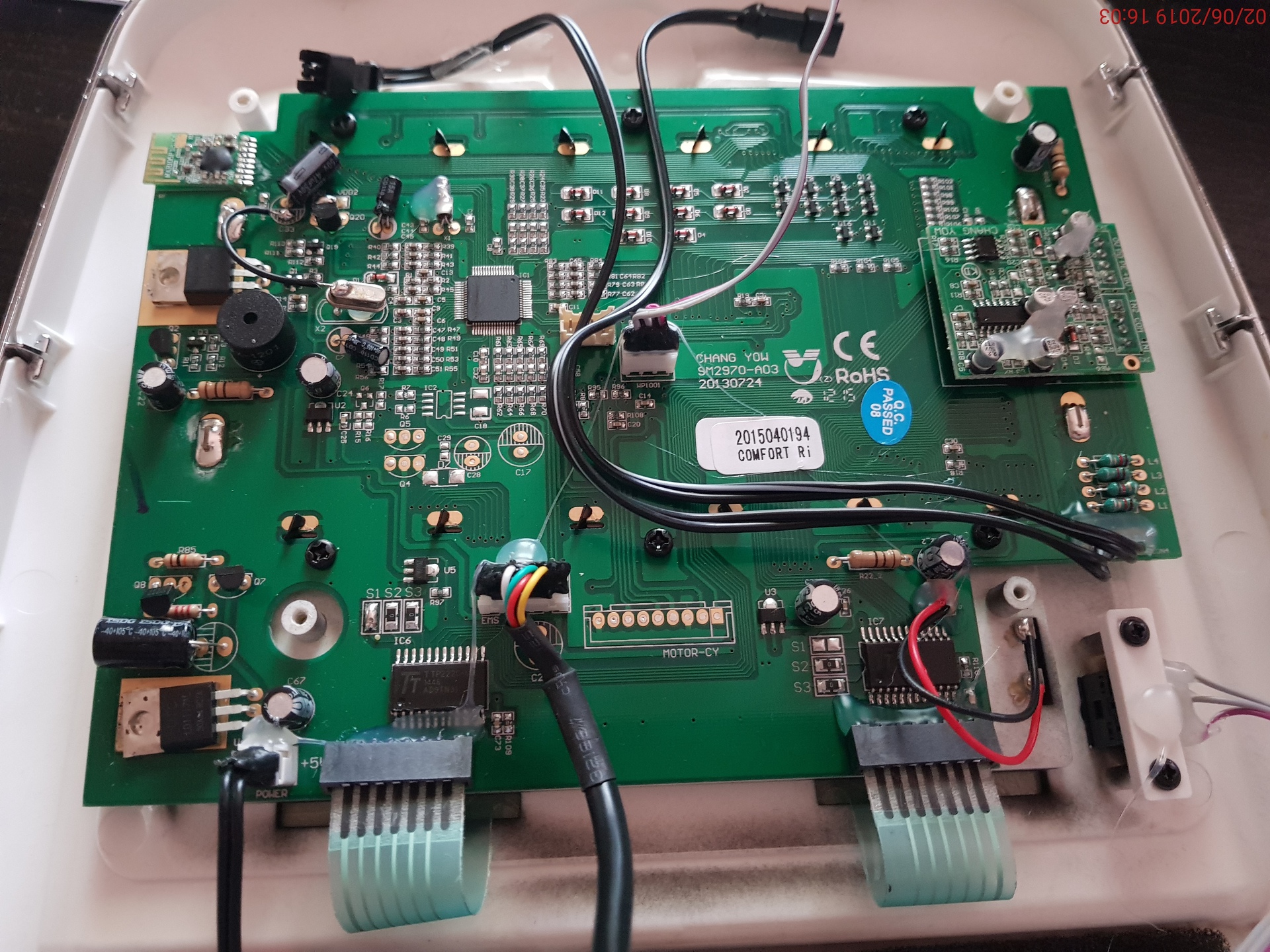 Egy kis segítséget szeretnék kérni tőletek. Van egy szobabicikli aminek az érintő kijelzője alapvetően jól működik, de néha teljesen magától bekapcsol. Van amikor napokig nincs ilyen, de néha.. nem tudom mitől függően.. páratartalom vagy nem tudom.. sűrűbben előadja. csatoltam pár képet az elektronikáról és az előlapról.