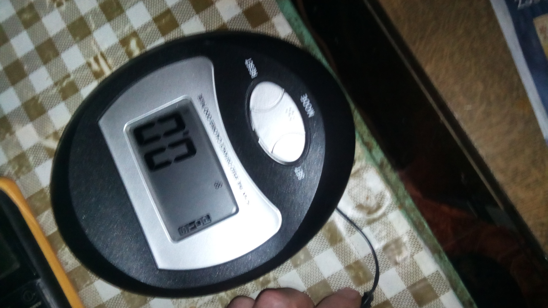 Aztán visszacsatlakoztattam az érintkezőt a bringán lévő csatira, bekapcsoltam a kijelzőt, s ahogy körkörösen "hadonásztam" a mágnessel az érintkező előtt, úgy jelezte a kijelző a megtett távot, illetve a sebességet (így tettem meg 200 m-t 19,4 km/h-val ).