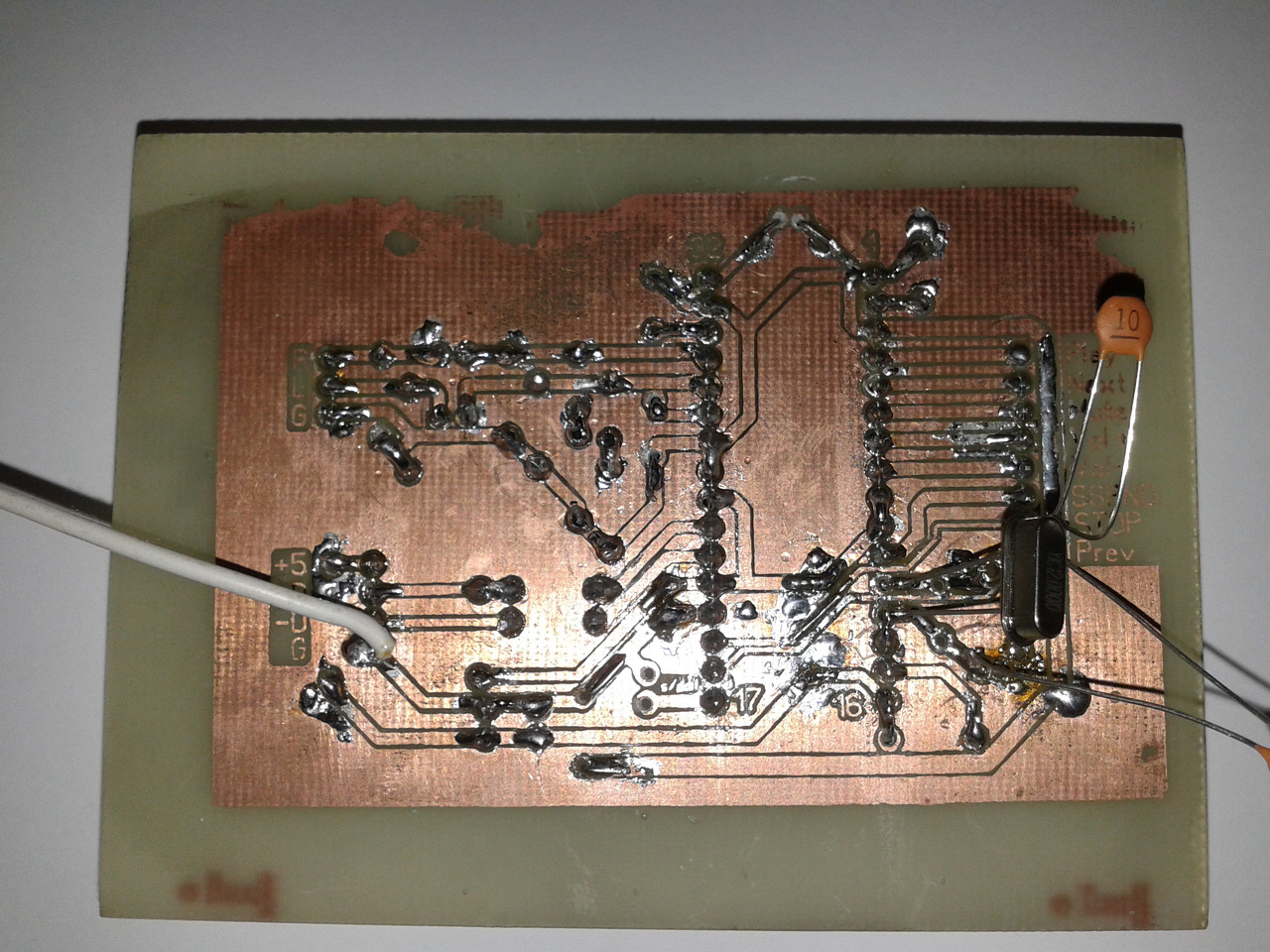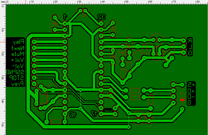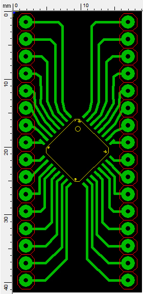 Elég sok helyen vannak nagyon közeli vezetősávok, furatok, rövidzár is lehetséges. Amúgy miért van az IC külön nyákon, miért nincs rajta a panelen? Ha a vezetősávok között ki van töltve a rész fóliával az jó, de az a rész ilyenkor legyen földre húzva, mert most csak lóg a levegőben és az nem jó nagyfrekvenciás közegben.