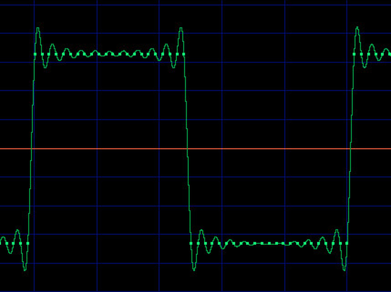 Nem inkább 1KHz lesz az? 10KHz-en 96KHz mintavételezés tud legfeljebb négyszögszerűséget. Amúgy nem a szűrő hiányáról van szó, hanem arról, hogy a négyszögön párhuzamosnak kellenne lennie a hullámzásnak. Milyen DAC ez?