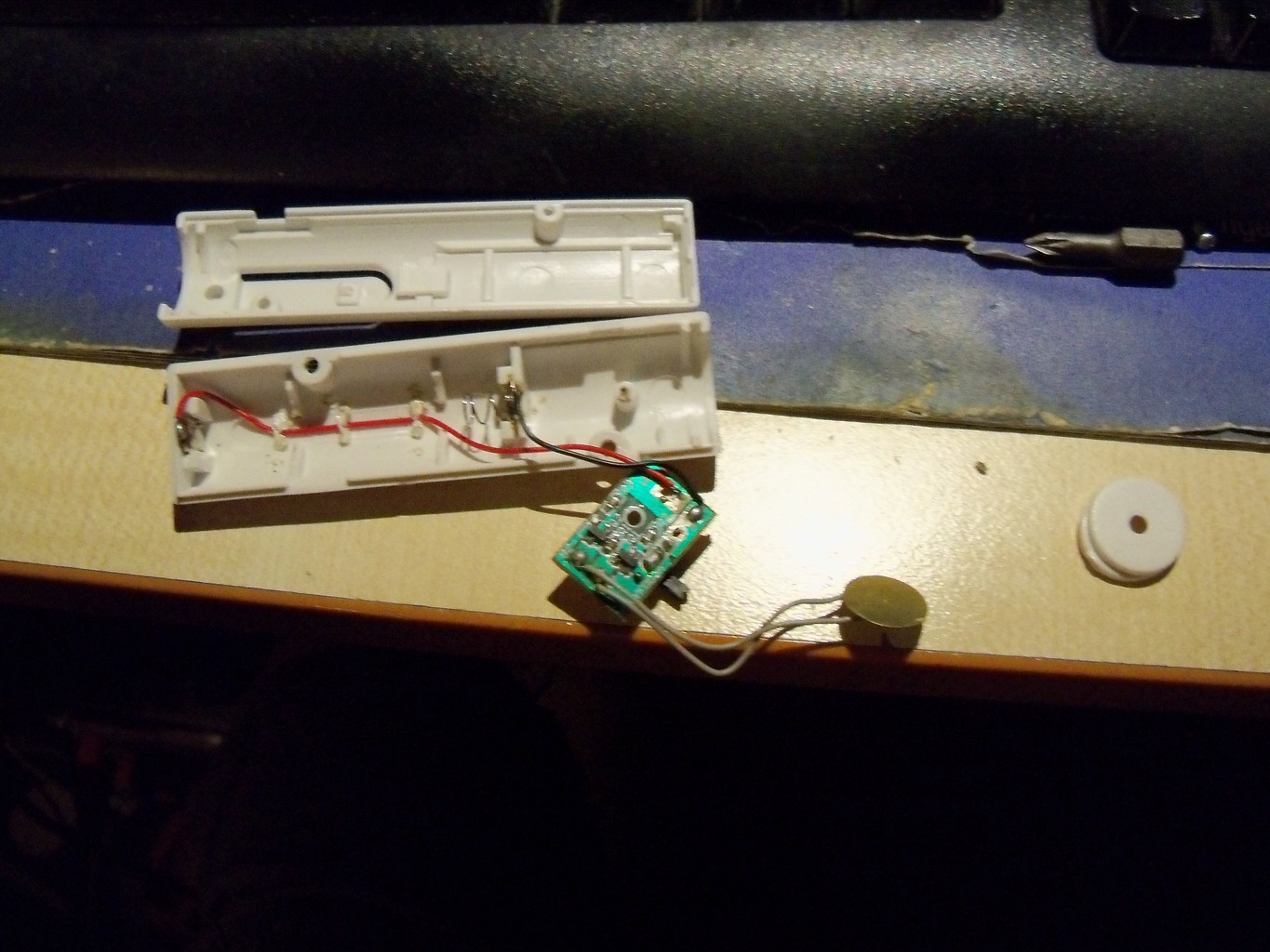 Nekem bevált a készülék Whalaky eredeti leírása alapján ( a kattogós szoftver ) Conrad-os piezó, söntellenállás nélkül. Műanyag dobozban és 9V-os elemről.