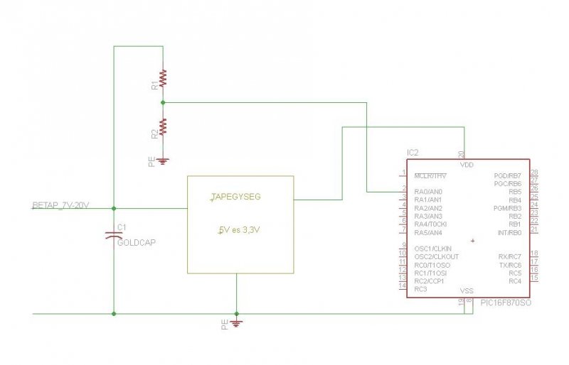 Adott egy mikrokontrolleres áramköröm (tervezés alatt). Azt szeretném hogy érzékeljem a táp kihúzását, magyarul az áram elvételét. Lenne egy goldcap a nyák táp része előtt, a táp 5Vot és 3.3Vot állít elő. A goldcap előtt ha eltűnik a feszültség akkor történjen valami, pl a mikrovezérlő megszakítás lábán ha leesik L szintre akkor goto SaveData. Arra gondoltam hogy reed relével vagy optokapuval ügyeskedni. Bemenő fesz 7-20V amiből a nyák tápja állít elő 5 és 3.3 V-ot. Mivel megvalósítható a feszültségesés figyelése?