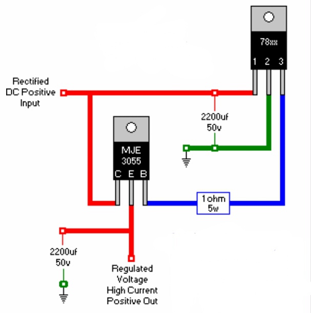 Üdv, azt hiszem pont te írtad nekem ezt a 220ohmos bekötést , de nem a 3055 höz , hanem a tip142 höz és most a fenti rajzban a tip142 őt tettem , ez nagyobb teherbírású csak a lábkiosztása más.