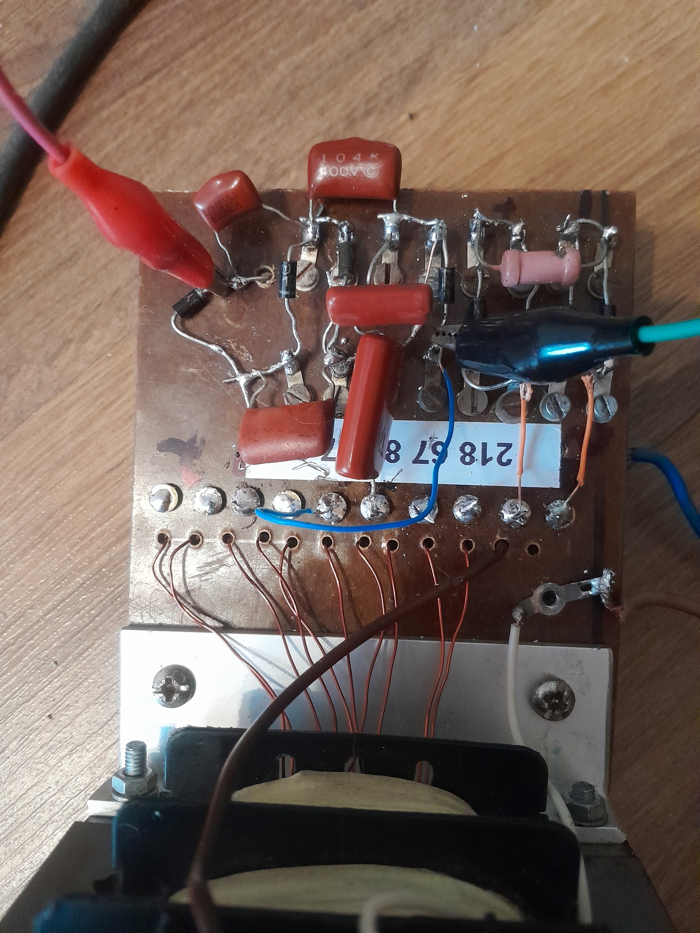 A trafóra került 2x6,7V, 82 és a táp fesz. Mivel a nagyfesz tekercsnek már nem jutott hely ezért a 82-t láttam egyedüli megoldásnak az átalakításkor.