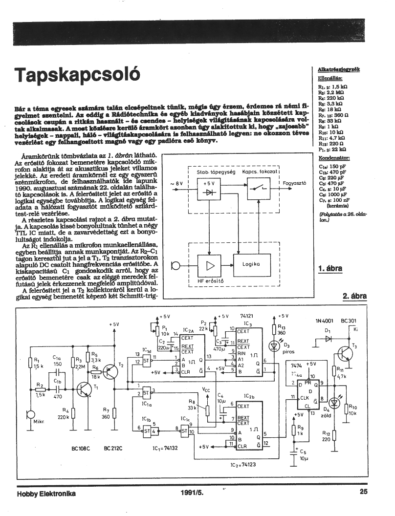 Nem látok a kapcsolásban potit, akkor már előre be van állítva/hangolva a taps frekvenciájára?