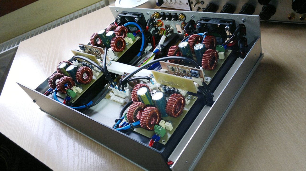 Hali.Elég jó lett a bele tetszik,gratula.Kívülre mondjuk tehettél volna xlr meg speakon csatit.....Nekem is hasonló van csak a hidalt verzióban.Csak az enyém csúnya mert számítógépházban van a táppal együtt,procihűtővel.