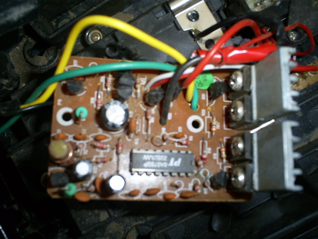Az a helyzet, hogy az autónak nincs meg a távja, s új elektronikát kell építenem, ami nem is lenne gond, de a kormány vezérlésnél megakadtam. Egy kis szervómoci van benne egy potival, az egységből 6 szál vezeték jön ki, ebből kettő a moci (kipróbáltam 6VDC motor) egy a motor fémháza (GND), valamint 3 szál a potiról, mely a gyári panelra megy, egy kissé érdekes bekötéssel, melyet nem értek igazán. (melléklet)