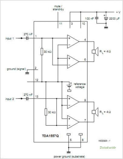 csak ezt úgy lehet kötni, hogy 4×11W 2-2ohm, vagy 2×22W 4-4ohm több variáció nincs, ugyanis ha megnézed az adatlapját, ez egy négy csatornás erősítő, aminek két csatornája fázis fordítva van. ergó 2-2 csatornát már így is hídba kötsz, többet nem tudsz szerintem.Ezen én is elgondolkoztam, de ha az egyik bemenetet fázisfordítjuk, azzal csak annyit érünk el, hogy azon az oldalon, lesz egy 180, meg egy 360-as fordítás, ugyan ott tartunk ahol előtte. érdemesebb ránézni egy 100W-os mono TDA-ra, akkor már, csak azt nehezen bírja az akksi!