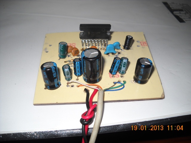 Minimum feszültség: 6V maximum 18V! 14-15V az ajánlott Max. áramfelvétel 4A (de ezeket az IC adatlapján is megtalálod. Az erősítő 4 kimenettel rendelkezik 4x11 Watt 2invertáló és kettő nem invertáló kimenettel. Ha 2-2 kimenetet hidalva kötsz be úgy kapsz 22 watt max teljesítményt 4 ohm -os hangfalaknál. Én megépítettem 2 erősítőt ebből, amiből az egyik hidalva van így csak egy sztereó erősítő lesz ami 2x22Watt teljesítményre képes, Ez jó pl a Center és a SUB hangfalnak (a Sub-hoz nemárt egy alul-áteresztő szűrő is. De mint írták a Cikkben megtalálható az összes információ, és annyira egyszerű elektronika, hogy elegendő egy saválló (pl. lakkfilccel megrajzolni.)