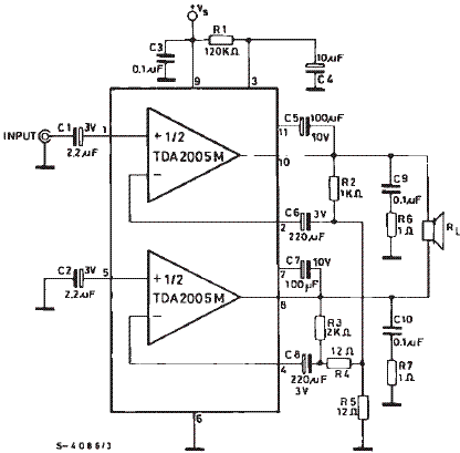 Én megpróbálkoztam a "megépítésével" nyák nélkül. Annyit csináltam az IC-vel:ráraktam egy méretes bordára, a +Vs-re és a GND-re +18V-ot kötöttem,az OUTPUT1-re és GND-re kötöttem a hangszórót,az INPUT-(1)-re kötöttem a bemenetet,alig erősít valamit,mondhatni semmit. Hovategyem az elenállásokat,kondikat? A legegyszerübb végfok kell nekem