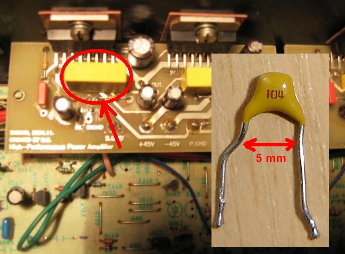 Az alkalmazott kondi 100nF-os, 275V AC feszültségű ARCOTONICS vagy BC component gyármány. X2-es szabványú polipropilén kondi, de használhatsz WIMA MKS 3 v. 4 (fémezett poliészter)szériát is. A kerámia kondit a feszültsége miatt nem ajánlom és nem is indokot a használata, ez nem LNC erősítő...