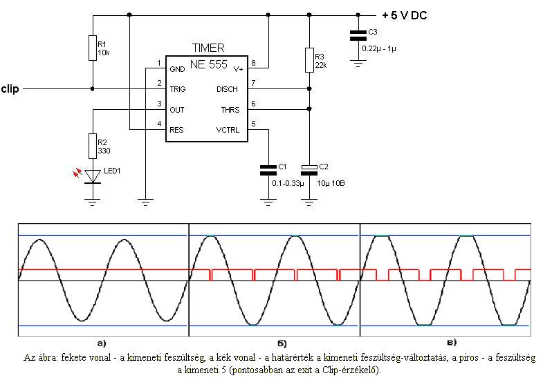 A 93-as IC 5-ös clip lábának hasznosítását mutatja. Egy NE555 típusú időzítő segítségével működik. Az ábra szerint amíg nem klippingel a kimenőjel, addig egy állandó feszültség van jelen az 5-ös lábikón, majd minél nagyobb a torzítás, annál hosszabb időre szakad meg a jel. A kérdésem az lenne, hogy ezzel a kapcsolással megoldható-e a visszajelzés, működhet-e és gondolom valamelyik kondi határozza meg, hogy a LED mennyi ideig tartsa a fényét, ha kap egy jelet ![]() Én már megvettem hozzá minden alkatrészt, csak most jelenleg nincs erősítő, amin kipróbálhatnám. Esetleg lehet tesztelni anélkül is valahogyan ? |