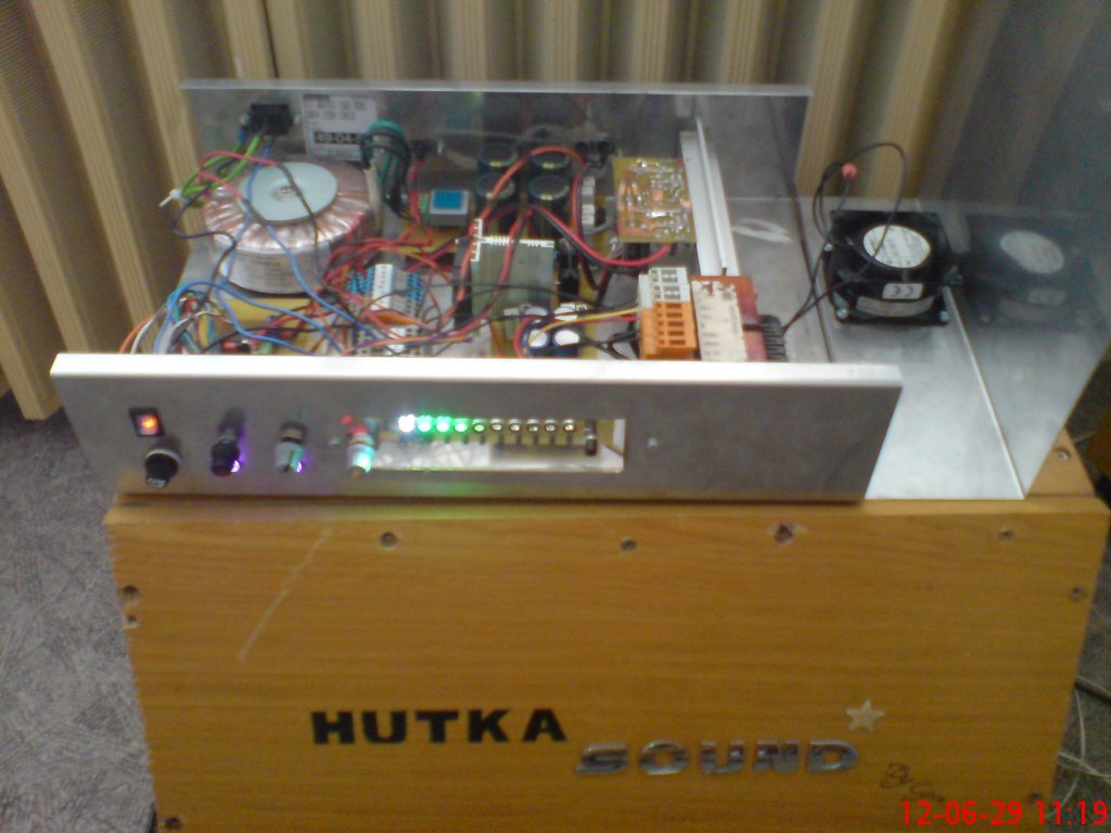 ) Minden hiba nélkül ment, de a bemenetre csak egy mp4 lejátszót raktam aminek nem volt valami nagy bemenő jele így hát ma egy keverővel próbáltam ki és jelentősen nagyobb volt a hangja. Sajna a hangszórók amik itthon vannak már fél hangerőn túl nem bírják a kiképzést és 100W-os mind 2-ő (6 ohm)!! (párhuzamosan volt kötve mivel csak az egyik panel van kész) Bitang ereje van ennek a ránézésre kicsi erősítőnek. Azt hiszem veszek még hozzá 2 db 10.000 µF kondit hogy bírja majd mind 2 panelt hajtani. Szép tiszta hangja van, erőteljes a mély is és a magas is szép. 2 db 10x7x3 cm-es borda van ic-n ként, de nagyon nem elég rá, hamar felfűti főleg akkor ha a mély hangok kerülnek előtérbe. Ez egy hátránya hogy nagy bordákat kell rátenni.