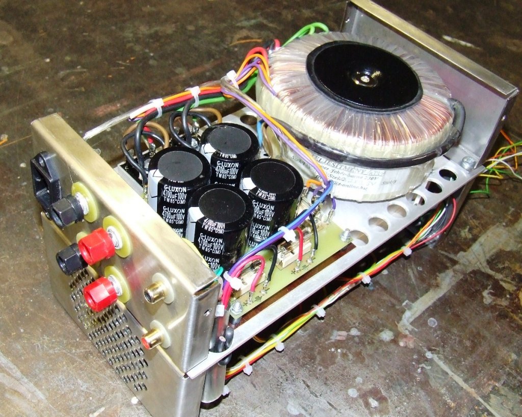 toroid trafó 300watt, grates hid irányitó,10000uf50volt elkók 2db,a kitt +-34voltal táplálom,
