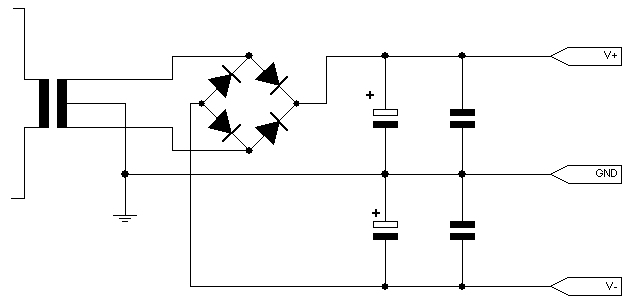 A szubbasszus végfokomban ő táplálja +/- 15V-tal a szűrő áramköröket. (072 ícével szerelt panelek) A végfokot egy 300-as trafó eteti. A védelem és a venti szintén külön trafóról megy, amely egy Unitra rádióból lett kitermelve. A tápban nincs semmi extra, 7815 és 7915 stabkockákkal van csinálva, 2x2200 µF puffer, 3,5 A-es Graetz, stabok után 2x4,7 µF és 2x 100nF kondik. A nyákrajz már nincs meg, mivel kézzel rajzoltam, de ha valamilyen tápra van szükséged, szívesen tervezek neked. Pár napja felraktam a bedobozolt erősítő képét, ha érdekel lapozz vissza egy párat.