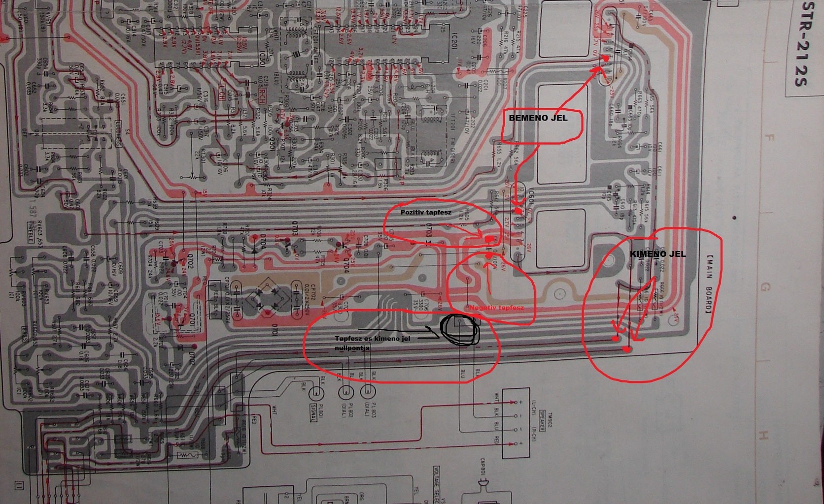 Bejelöltem két 56k ellenállást (R612, R622) melyeket érdemes kicsípni, hogy ne osszák le a bejövő jelet. Sajnos a 250k-s hangerőszabályzó miatt így is elég a maximum közelében lesz a normál használati tartomány. A mellékelt ábrán piros ponttal jelöltem hová kötném a végfok panelek testeit. Remélem a bekötő vezetékek a lehető legrövidebbek és a +,-, test ágakat összesodortad.