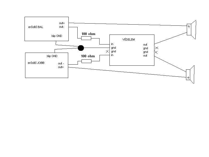 Mutasd be a hangszóróvédődet! A GND-re kötés az rövidzárlatot jelentene az erősítő számára. Pontosítsunk!