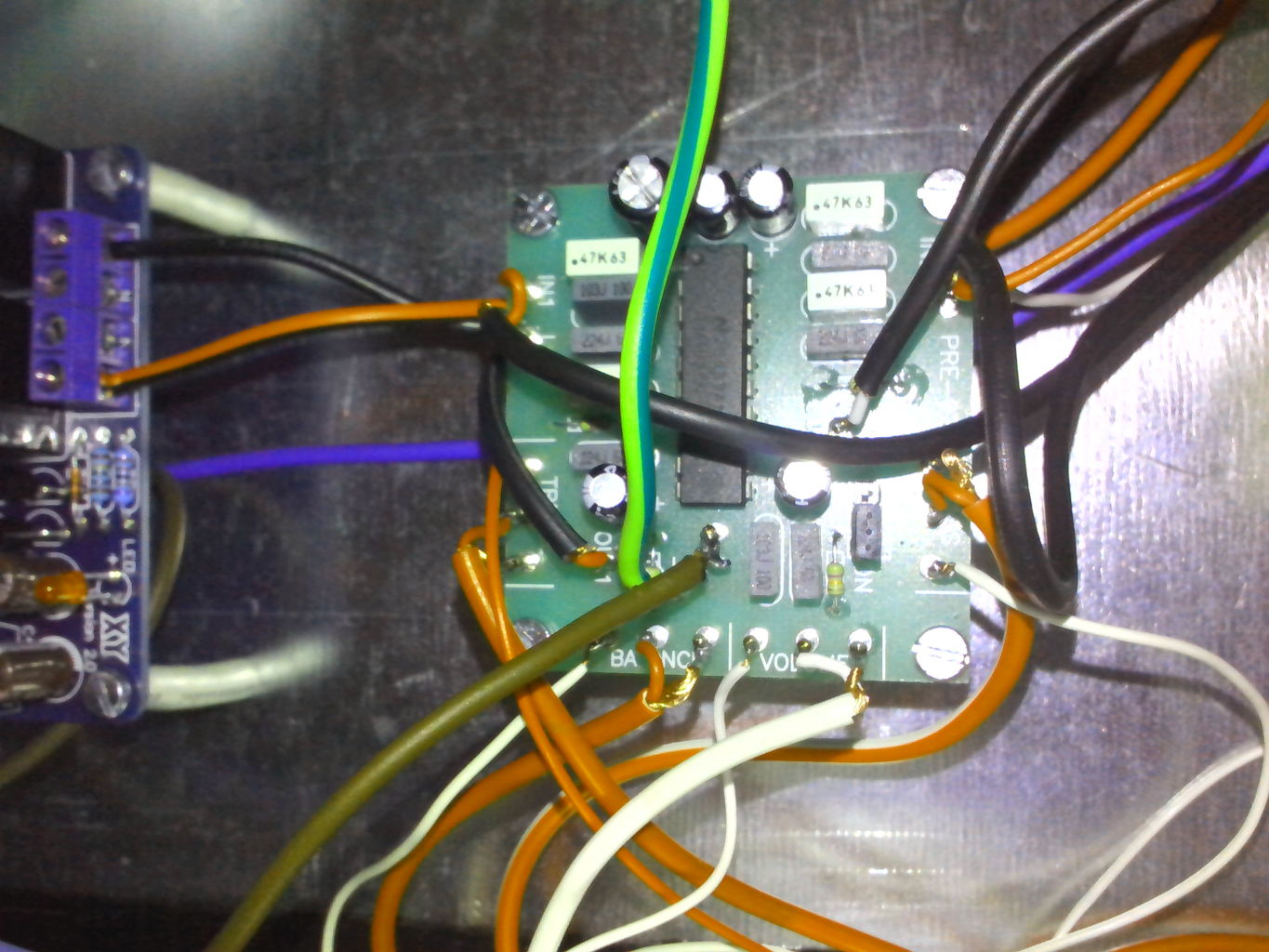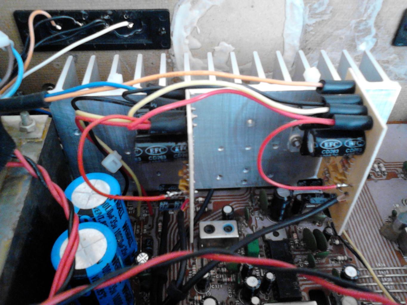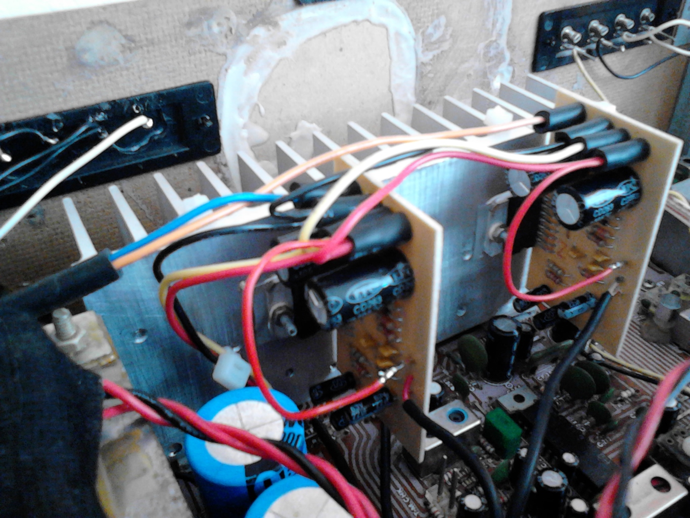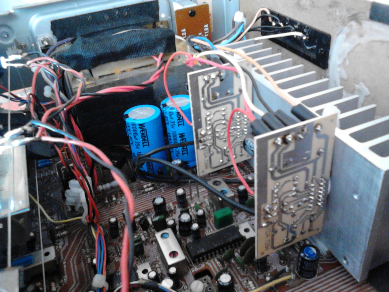 A keszulek puffer kondenzatorait meg a panelek beszerelese elott kicsereltem ked Wendell tipusu 10000µF-os kondira, 35 voltal. Probaltam a legrovidebb kabelezest kesziteni, majd a fenykep keszitese es feltoltese utan varom velemenyedet, es kiveszem azt a ket ellenallast amit ajanlottal. Koszonom szepen segitsegedet.