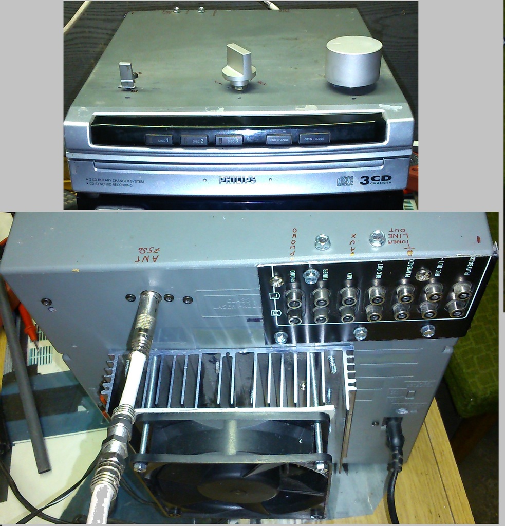 A belseje még elég káosz még csak teszt üzemben van és itthon talált "szemétből" és egy rossz technics erősítőből építettem