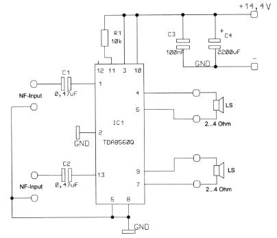 pc tápról fog menni a cuccos. azzal remélem megelégszik, mert 14V van az adatlapján...(TDA8560)