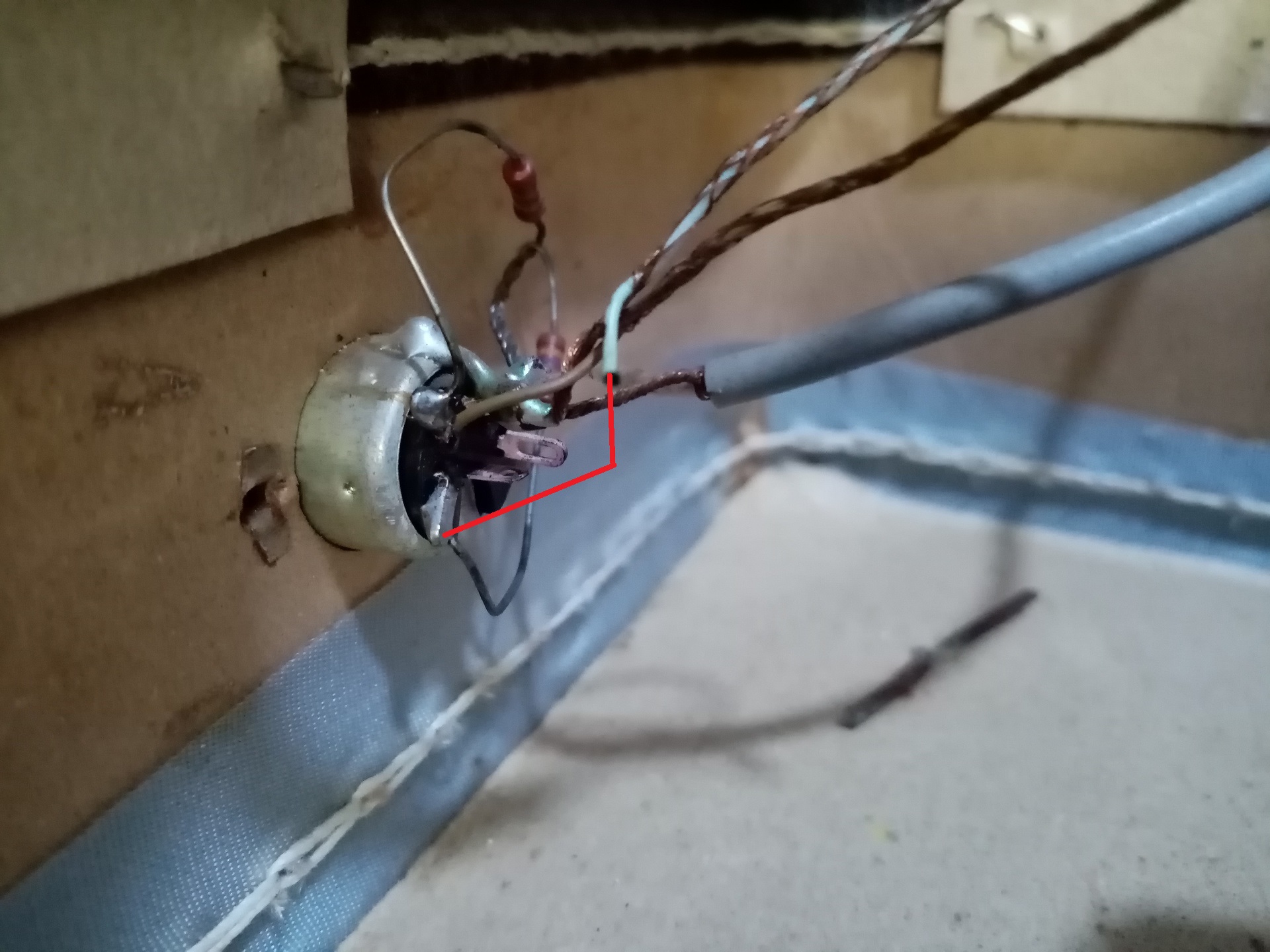 Üdv! Piros vonallal jelöltem a képen. Az ellenállások gyárilag ott vannak. Ha jól látom a képen a hangszedőtől érkező barna vezeték a helyén van az egyik ellenálláson, a másik világos kék vezetéket ami le van szakadva, a jelölt módon a másik ellenállásra kell forrasztani.