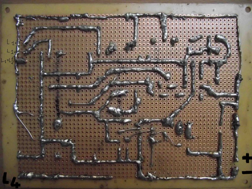 Építgetem skory 18V-os minitesláját. A nyák az saját tervezés(barátommal). Az alkatrészek közül még hiányzik egy IRF3205, egy 6.8 mikrós MKS kondi, 2 SF18 as dióda, egy biztosíték, meg egy tekercs. Ezek részben beszerzés alatt, részben a polcon (illetve az IRF3205 nem találja a helyét, mert később jöttem rá, hogy a kondiknak fizikai kiterjedésük is van... )Sajnos a forrasztás nem lett túl szép, amit nem tudom miért van, de az áramkör alakul. Ma épitettem még egy "tekercselő apparátot" a secunderhez, de ezt inkább eltitkolom mert finoman szólva is gány lett .