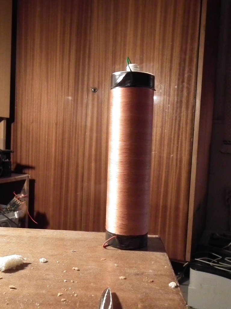 Mutatok képet a majdnem kész tekercsemről. Idézet: „tekercsen lévő ellenállás, és kondi rácsra menő feszt stabilizálását végzi.” Nem blocking oszcillátor lesz a csővel? Mert akkor azok adják meg a zárás hosszát, nem lehetnek stabilizátor elemek, mert akkor nem lenne rezgés!