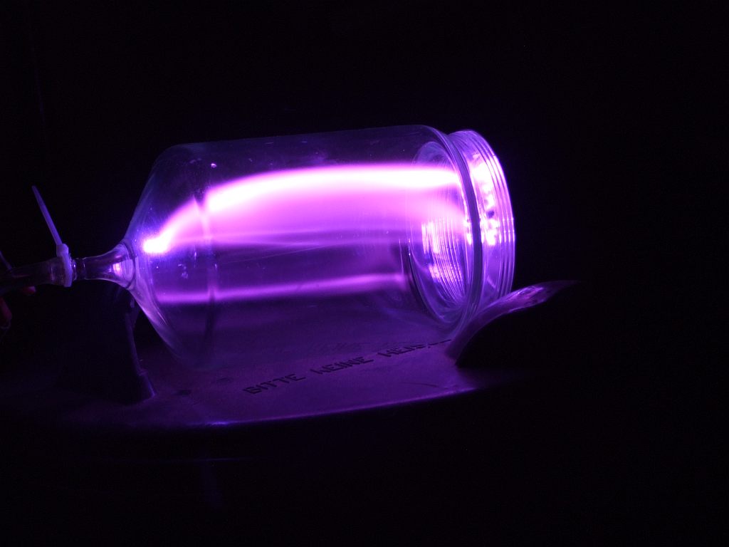 ![]() 40mbar nyomáson már eléggé szép plazmákat lehet összehozni 10kV-ról.