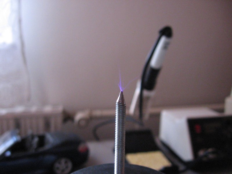 Lemez nem jó, mert az oldala éles. Gömböt, vagy toroidot érdemes rátenni, aminek szabályos, lekerekített élei vannak. Kísérletezésnek rárakhatsz bármit. De ha eleve ekkora szikrát csinál, máshol is szét kell nézni, pl. a primer huzalodat kapásból érdemes vastagabbra cserélni, és legyen vörösrézből. De elsőnek rakd feljebb a primert egy kicsivel, és ügyelj rá, hogy ne nézzen lefelé semmilyen csúcs (ez a kicsi szekundered hátránya).