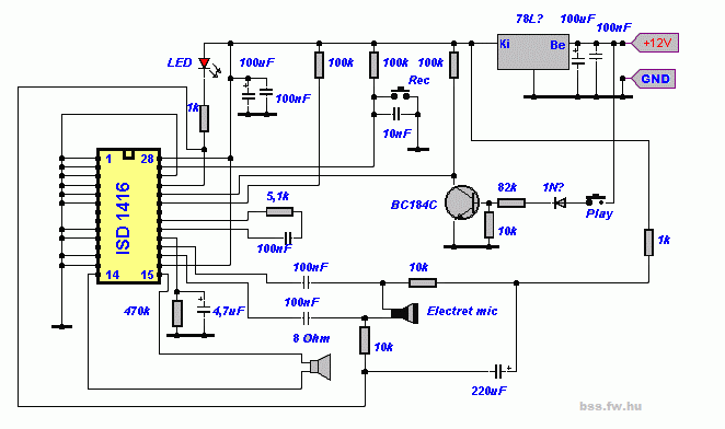 Köszi a pontot.Konkrét rajzot nem tudok,de ahogy elnéztem az adatlapot,ez csupán egy véletlen hozzáférésű memória,nem speciálisan"beszédmemória" áramkör.Léteznek arra is cél IC-k,de fejből nem tudok típusszámot.Az otthoni gépemen van valami rajz úgy emlékszem,ha kell elküldöm.