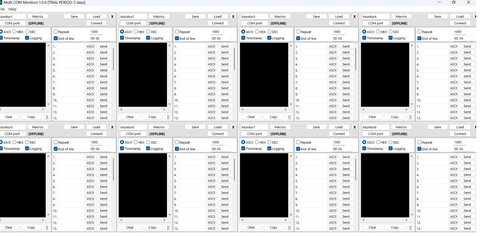 Munkáim során szükség volt egy valódi, több soros portot is kezelni képes, makrózást is ismerő PC-és programra. Mivel nem igazán találtam számomra megfelelőt, így hozzá fogtam és írtam egyet. Mivel jelenleg BÉTA állapotban vagyok, nagyon szeretném, ha pár kolléga is látná, és esetleg tanácsot is adna, rá mutatna az esetleges megvalósítási hibákra, javítási lehetőségekre. Hosszabb távon ez egy "eladható " termékké szeretne válni, így aki segít a tesztelésben annak természetesen adok 1 db éves licensz kulcsot (az első 2-3 jelentkezőnek). Én SIMCOM 7670E modul kommunikáció beállításhoz használtam, úgy hogy az ESP32 3 soros portját monitoroztam vele. Amelyiken a SIMCOM volt, ott makrózással beállítottam különböző funkciókhoz (SMS küldés-fogadás, pontos idő lekérdezés, kapcsolat szerverrel HTTP-vel, és FTP-vel, GSM pozíciók lekérdezése) az AT parancsok sorrendjét, a timeout-okat (parancsonként különböző idők ), és a kiküldött parancsokra érkezett válaszok értékelését, majd az eredménytől függő ugrást a következő makro sorra.Akit érdekel a tesztelés, írjon ! Természetesen bárkinek aki használni szeretné elküldöm a programot, a TRIAL változat 7 napig korlátozás nélkül működik.