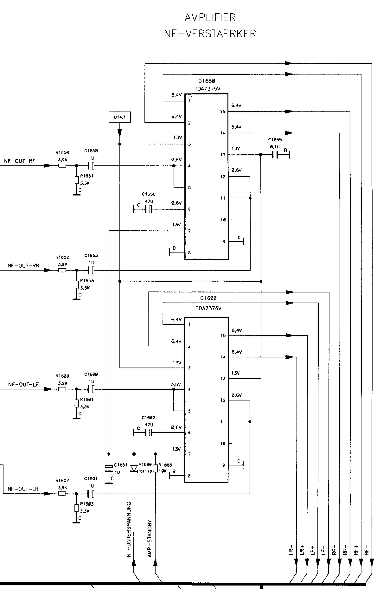 A mellékelt rajzot ollóztam össze, viszont itt úgy látom bal-jobb hangszórókat hajt meg az egyes IC és nem elöl-hátul. Ami ha jól sejtem jelentheti hogy mindkettő rossz vagy egyik se.