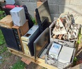 INGYEN ELVIHETŐ EGY RAKLAPNYI CUCCIngyen elvihető egy nagy raklapnyi cucc, úgy ahogy a képen is látszik! A Rekeszek és a raklap maradnak!Ami van: -Thomson kis hangfal -AKAI Hangfal -4 csatornás rádióerősítő -Viglen régi számítógép -ORION és Videoton előlap -DVI+VGA LCD Monitor -ORION LCD TV 12V-os 32" -Kis méretű Samsung TV 15" -Komplett mini HIFI + Hangfalai -ORION 331 régi rádió káva és komplett bele -ORION Duna TV belseje -Centrifugális ventilátor -A szállításhoz egy sporttáska A cuccokat egyik ismerőnél Budapesten raktam le, innen VIHETŐ el EGYBEN. 1 hétig tudja tárolni, utána megy a shredderbe. Ez azt jelenti, hogy Április 11-el bezárólag el kell vinni tőle mindent! Jelentkezni nálam lehet, és adok kontaktot hozzá!