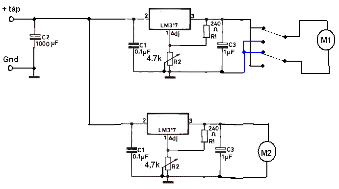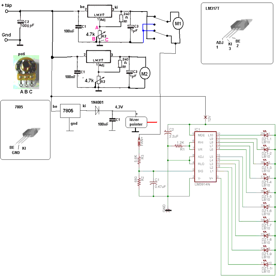 és ennél úgy látom irány-t se lehet váltani! De ha lenen egy kapcoslási rajz hozzá azt megköszönném! és tudsz az lm 317-hez vmi adatlapot?vagy megicnsálnád a kapcsolási rajzot?
