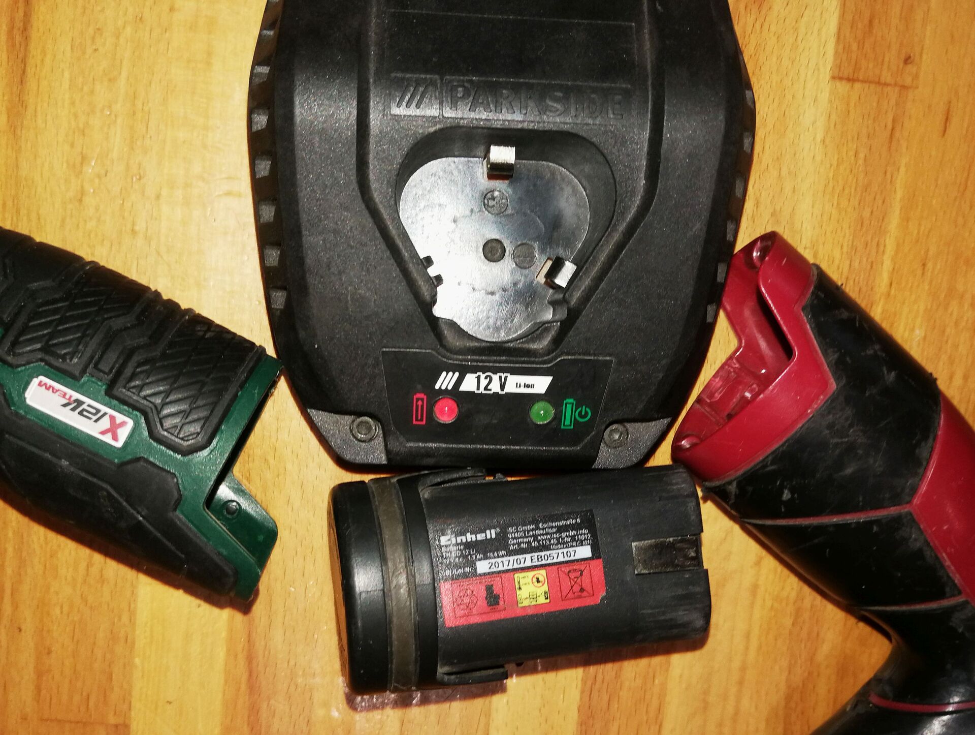 Most előkerültek a cuccaim (a régi kerrékkulcs akkuja még nem, de a töltője itt van) A töltő lábkiosztása (csak 2 pin-es) teljesen eltérő, még nem a X12V sorozatú, ezért nem stimmel.