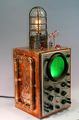 Steampunk numitronA mai hobbizásom eredménye lett az alábbi tok. Nem volt koncepcióm, csupán a réz szűkítőre csavaroztam két alátétet...,a többi meg jött magától menet közben. Eredetileg nixie csöves órát szántam bele, de a szűkös beltérből az átmenő csavarok is elvesznek. Így gyorsan összedrótoztam egy egyszerűbb numitron órát, amit talán bele is tudok súvasztani akkustól, dip tokostúl. Csupán a cső fog kilátszódni a nagyítólencse mögött. Az smd-kel úgy vagyok, mint a zsiráfokkal, nézni szeretem őket, de dolgozni velük nem akarok. Nyakban viselhető steampunkos öltözet kiegészítőnek szánom. Video